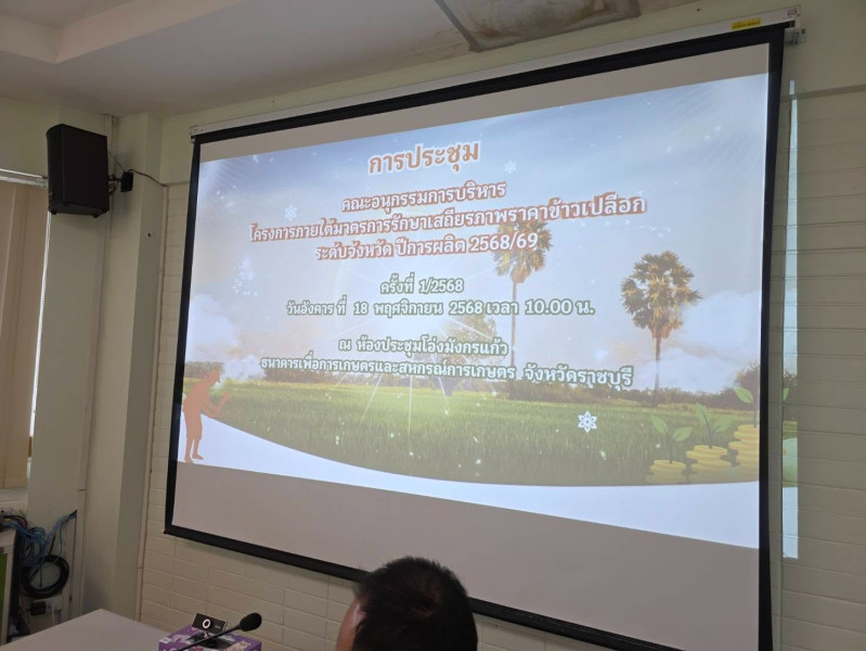 เป็นประธานการประชุมคณะอนุกรรมการบริหารโครงการภายใต้มาตรการรักษาเสถียรภาพราคาข้าวเปลือกระดับจังหวัด ปีการผลิต 2568/2569 ครั้งที่ 1/2568 โดยมีนายเฉลิม นวมนิ่ม สหกรณ์จังหวัดราชบุรี และนางโสภี แก้วน้อย ผู้อำนวยการกลุ่มส่งเสริมและพัฒนาธุรกิจสหกรณ์ และคณะอนุกรรมการบริหารโครงการภายใต้มาตรการรักษาเสถียรภาพราคาข้าวเปลือกระดับจังหวัด เข้าร่วมประชุมเพื่อพิจารณาเสนอความเห็นของคณะอนุกรรมการบริหารโครงการภายใต้มาตรการรักษาเสถียรภาพราคาข้าวเปลือกระดับจังหวัด กรณีสถาบันเกษตรกรขอกู้เงินจากธนาคารเพื่อการเกษตรและสหกรณ์การเกษตร ตามโครงการสินเชื่อชะลอการขายข้าวเปลือกนาปี ปีการผลิต 2568/69 ในกรณีเช่ายุ้งฉางเพื่อเก็บรักษาข้าวเปลือกที่เข้าร่วมโครงการ และในกรณีที่เป็นผู้กู้รายใหม่ โดยมีวัตถุประสงค์เพื่อรักษาราคาข้าวเปลือกให้มีเสถียรภาพ โดยเก็บข้าวเปลือกไว้ในยุ้งฉางเกษตรกรหรือสถาบันเกษตรกรไม่ให้ออกสู่ตลาดพร้อมกันจำนวนมาก พร้อมทั้งให้ความช่วยเหลือด้านการเงินแก่เกษตรกรในระหว่างรอการขายผลิตผลข้าวเปลือก และเพิ่มขีดความสามารถในการประกอบอาชีพ หรือยกระดับคุณภาพชีวิตของเกษตรกร ณ ห้องประชุมโอ่งมังกรแก้ว สำนักงานธนาคารเพื่อการเกษตรและสหกรณ์การเกษตร จังหวัดราชบุรี