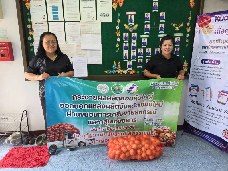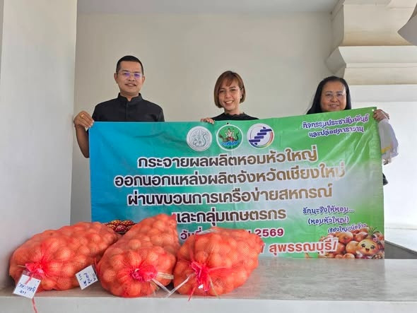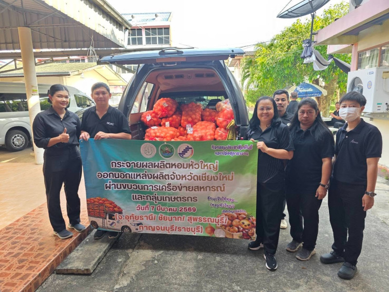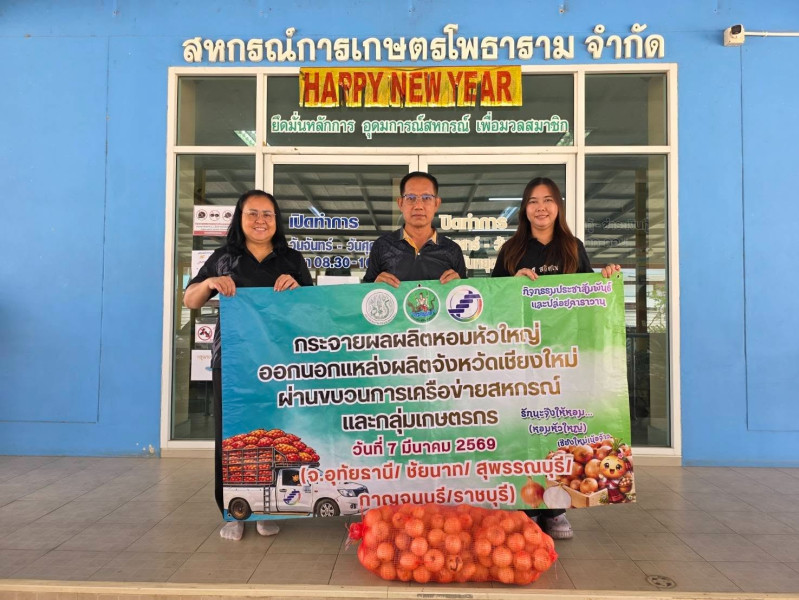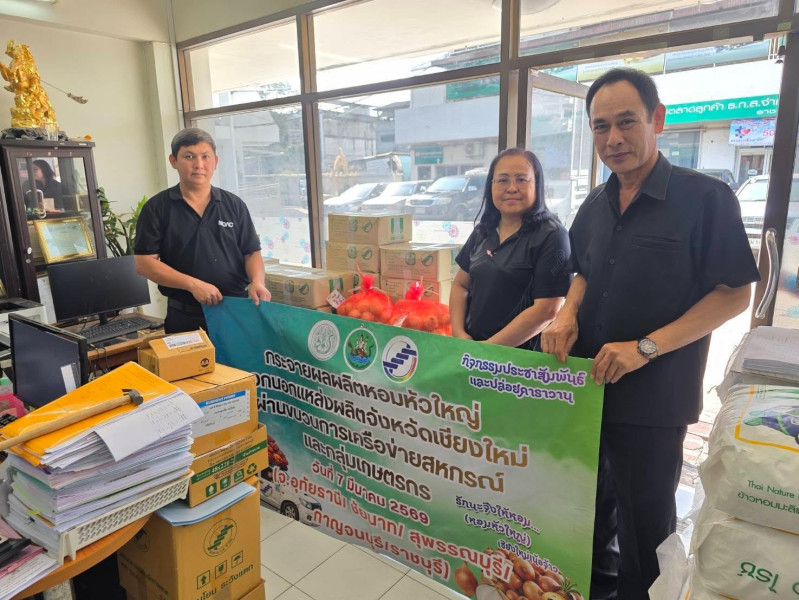 วันที่ 9 มีนาคม 2569 นายเฉลิม นวมนิ่ม สหกรณ์จังหวัดราชบุรี มอบหมายให้นางโสภี แก้วน้อย ผู้อำนวยการกลุ่มส่งเสริมและพัฒนาธุรกิจสหกรณ์ กระจายผลผลิตหอมหัวใหญ่ออกนอกแหล่งผลิตภายใต้แคมเปญ “รักนะจึงให้หอม (หอมหัวใหญ่) เชียงใหม่เน้อจ้าว” ของสหกรณ์ผู้ปลูกหอมหัวใหญ่บ้านกาดพัฒนา จำกัด อำเภอแม่วาง จังหวัดเชียงใหม่ จำนวน 600 กิโลกรัม ให้แก่สหกรณ์/กลุ่มเกษตรกร และประชาชนทั่วไปภายในจังหวัดราชบุรี